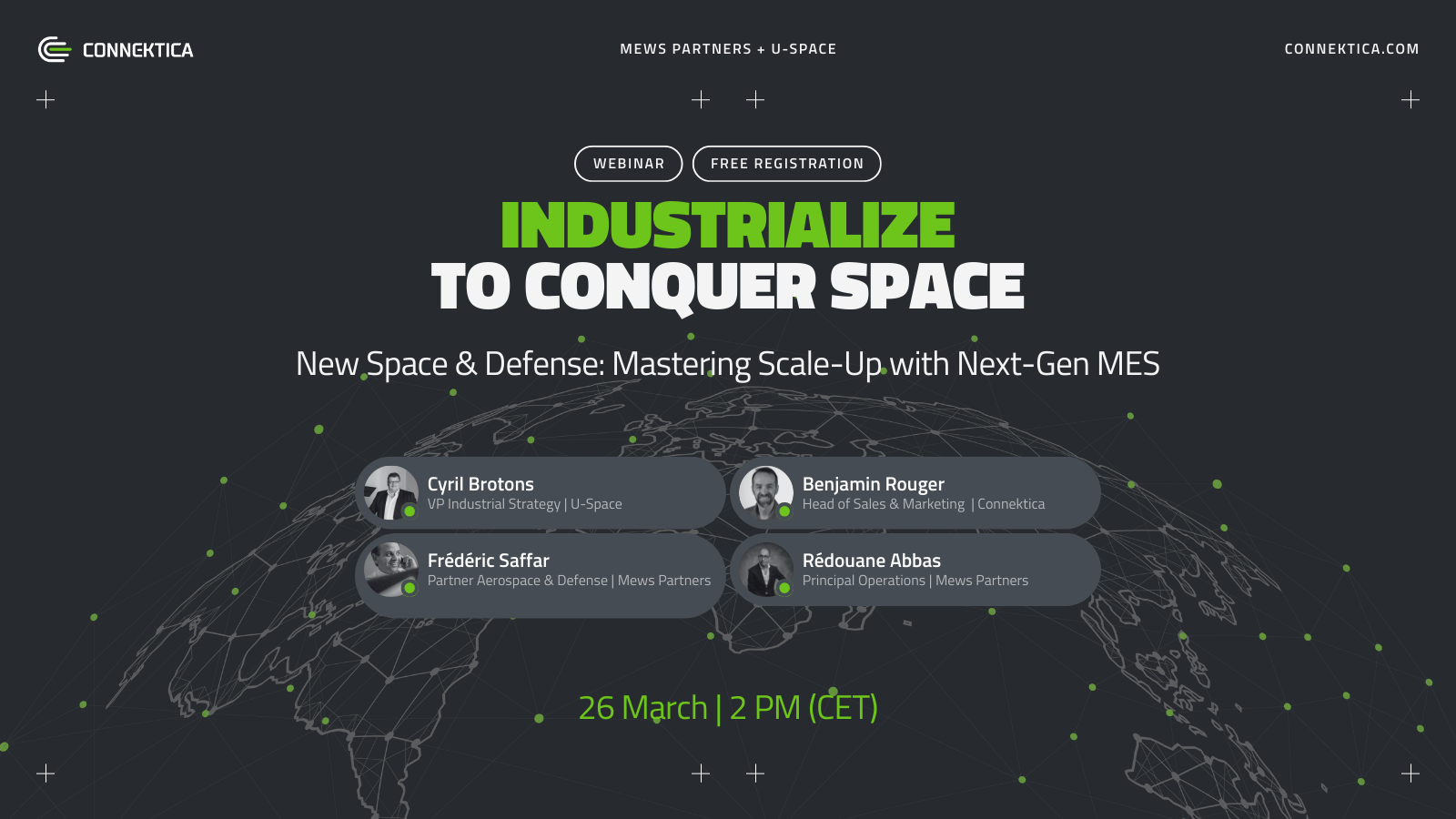 In March 2026, Connektica hosted a webinar with MEWS Partners and U-Space on one of the most underrated decisions in New Space industrialization: when to deploy your MES.